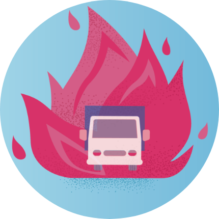 - 衝突、接触、墜落、転覆、火災、爆発、台風、こう水、盗難などの偶然な事故によって契約した車両が損害を受けたときに共済金をお支払いします。